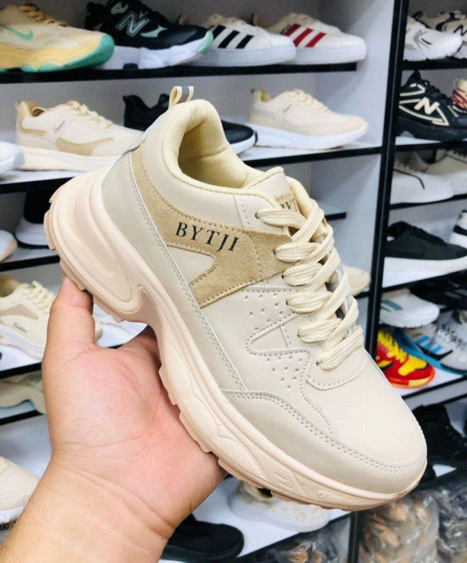 این کتونی فشن و اسپرت با طراحی لژدار حجیم (Chunky)، یک گزینه ایدهآل برای تکمیل استایلهای ترندی و روزمره است. کفش کاملاً در طیف رنگی کرم/بژ (Nude) یا رنگهای خنثی طراحی شده که قابلیت ست شدن بالایی با انواع لباسها دارد. زیره بسیار ضخیم و لژدار آن علاوه بر افزودن به جذابیت فشن، راحتی فوقالعاده و جذب ضربه بالایی را تضمین میکند. رویه کفش ترکیبی از چرم مصنوعی صاف و سوراخدار به همراه پنلهای جیر مانند با لوگوی BYTJH است که ساختاری محکم و شیک به آن بخشیده است. این کفش، با ظاهری مد روز و رنگ خنثی، به سرعت به آیتم اصلی کمد لباسهای اسپرت تبدیل خواهد شد.